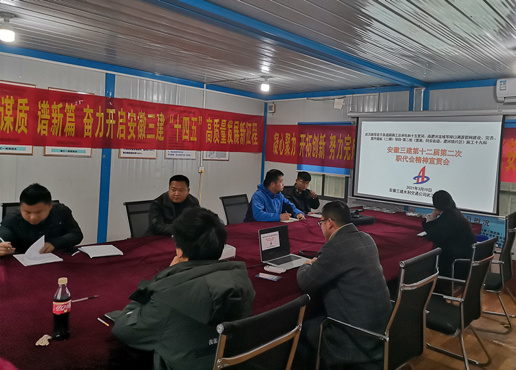 日前,公司十二届二次职代会顺利召开。公司所属各单位围绕会议决策部署,结合各自工作实际,通过悬挂横幅、张贴图解、集中学习、职工代表深入一线宣讲、职代大讨论等形式迅速兴起学习宣贯热潮,推动会议精神落实落地,引领广大干部职工砥砺奋进,为打造“千亿安徽建工”做贡献、奋力谱写安徽三建公司高质量发展新篇章,以优异成绩庆祝建党100周年。