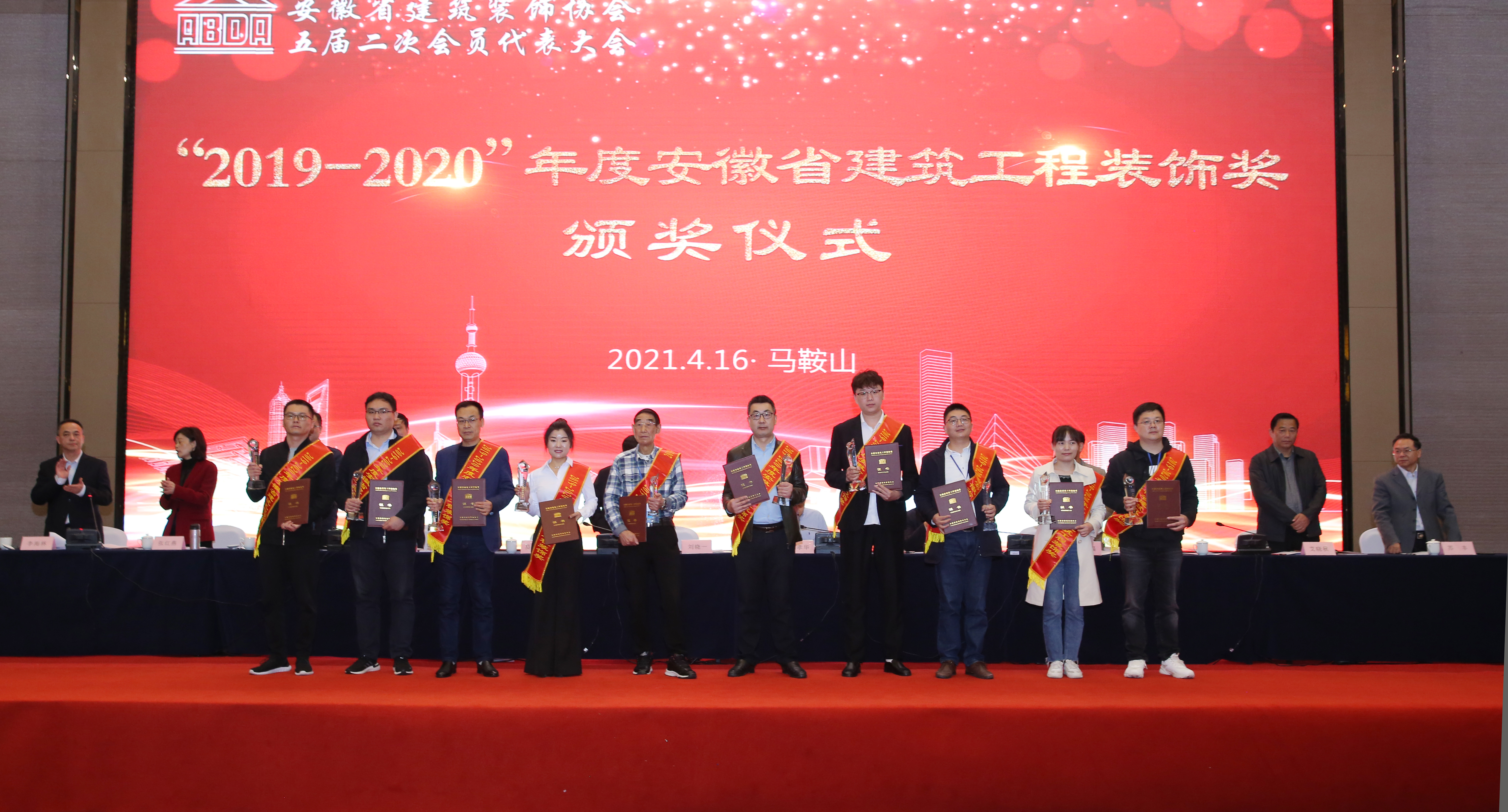 4月16日,安徽省建筑装饰协会五届二次会员代表大会在马鞍山举行。会上对“2019-2020年度安徽省建筑工程装饰奖”进行了隆重颁奖。我公司凭借精湛的工程质量荣获3项“安徽省建筑工程装饰奖”,并获“对新冠疫情作出奉献单位”表彰。