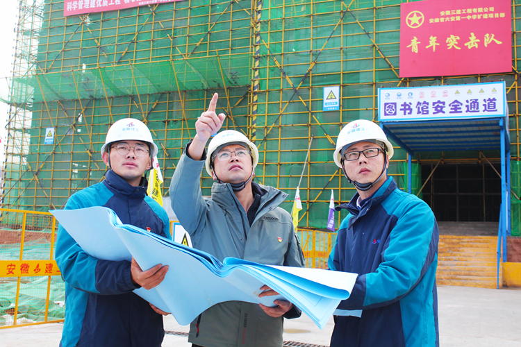 公司领导多次亲赴现场协调资源配置,要求集中优势力量,全力支持六安一中抢工,物资部门、集采部门直接对接马钢生产厂家,成立协调小组,确保钢材充足供应;在设备租赁公司支持下,项目部仅用7天时间完成15台塔吊等大型设备安装;公司还从优选班组库中筛选出钢筋班组3个、木工班组3个、瓦工班组4个、外架班组4个,振皖劳务公司从周边地区协调大量技术工人专门组建抢工突击队。