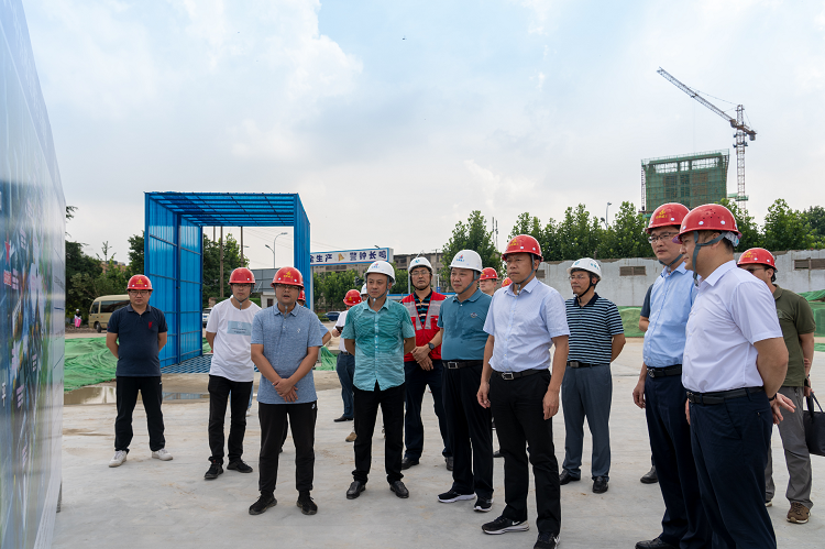 葛斌首先听取了项目建设情况简要汇报,实地察看了工程进度,询问了项目施工阶段出现的重难点,对项目部不怕困难、迎难而上的斗志表示赞许。他要求项目部一定要排除万难,全力以赴确保8月15日桩基节点目标及其余各大节点目标按时完成。