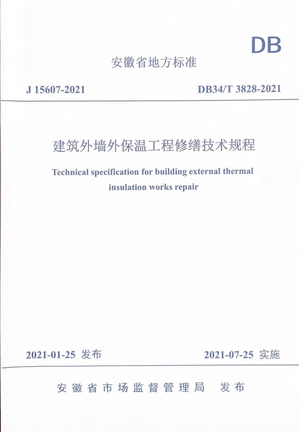 根据安徽省市场监督管理局《关于下达2018年第三批安徽省地方标准制修订计划的函》(皖市监函〔2019〕10号)要求,2021年1月25日,安徽三建工程有限公司参与编制的省级地方标准《建筑外墙外保温工程修缮技术规程》(DB34/T 3828-2021)由安徽省市场监督管理局正式批准发布,该《规程》于2021年7月25日正式实施。其中,安徽三建工程有限公司副总工程师陈雷负责主编了该《规程》主要内容的施工与验收两个章节。