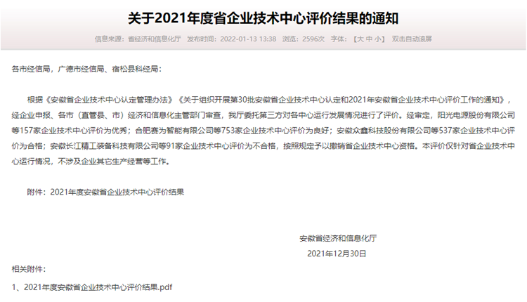 近日,安徽省经信厅公布了《关于2021年度省企业技术中心评价结果的通知》。经审定,安徽三建工程有限公司在2021年度省级企业技术中心复评中被评定为优秀。这是对安徽三建工程有限公司科技创新工作的肯定,公司将一如既往的加大技术创新投入,加强自主创新能力建设,促进省企业技术中心发展。