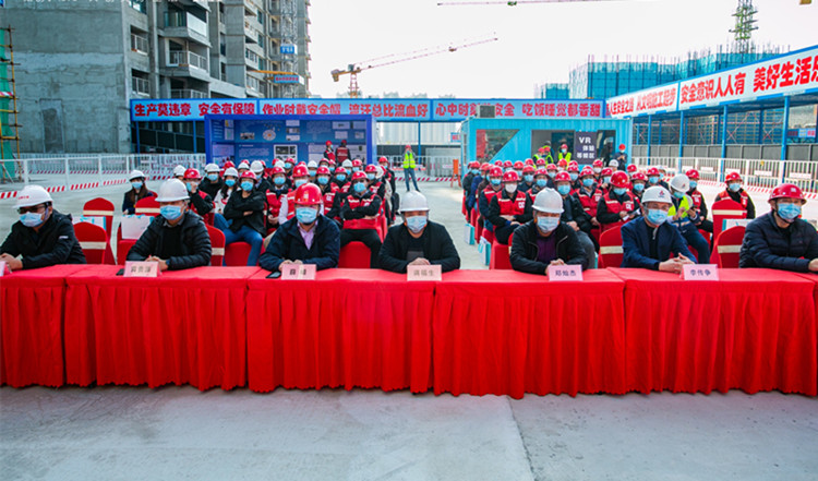 为加强各施工企业对房屋建筑和文明施工标准化管理的认识,提升全区工程质量和安全水平,2022年2月25日下午三点,汕头市龙湖区安全文明示范工地观摩交流活动在安徽三建汕头悦江府北区项目举办。