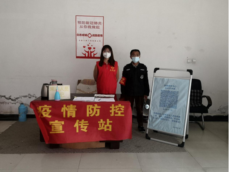 3月23日,工程研究院志愿者曾凡岑在骏豪商务中心协助物业开展疫情防控工作。