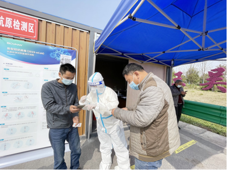 3月28日,北城工业公司派遣志愿者前往吴山高速路口协助吴山镇镇政府,开展为期一周的核酸抗原检测工作。