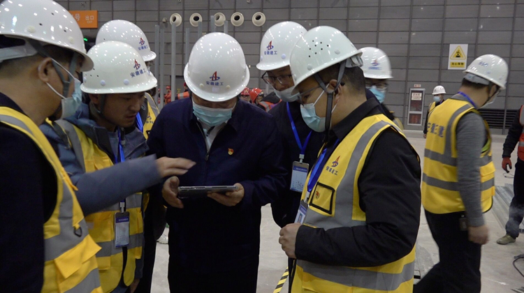 为了争取时间,三建提前做好了人员、物资的准备工作,图纸还未下达,安徽三建已经调集近200多名本地工人,落实核酸检测和查验双码,为进场施工做好准备工作。拿到图纸后4个小时,项目部就制定了交叉作业的科学施工方案,同时下达了精确到小时的施工进度计划。装饰、安装、土建立即投入施工。制定解决方案。办法总比困难多。在施工过程中发现任何问题,项目部立即现场解决。现场停水48小时,项目就调用消防水车、购买饮用水,千方百计保证项目不停工。三建参战的装饰、安装、土建团队紧密配合,形成合力,确保了各项工作高速推进。