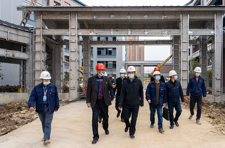 4月15日下午,建工控股党委委员、副总经理、总工程师戴良军一行赴我公司合肥一中东校区项目督导疫情防控工作,安徽三建党委书记、董事长何洪春,党委委员、副总经理张斌参加调研。