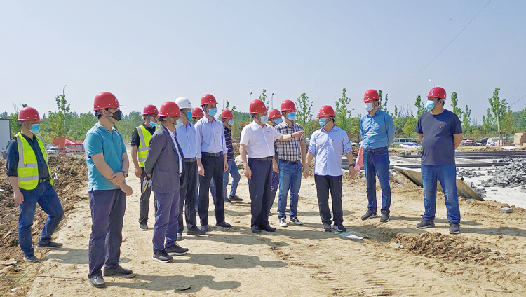 王明礼就如何加快项目建设作出了工作部署,一是参建单位要统筹协调施工机械资源,全力推进土地平整工作;二是设计院要快速拿出设计方案,随时调整设计、优化设计、深化设计;三是参建单位要确保项目现场人力资源充足、有序、可循环;四是全力做好物资保障,加大协调力度;五是持续抓好抓严疫情防控工作,筑牢疫情防控坚固防线。