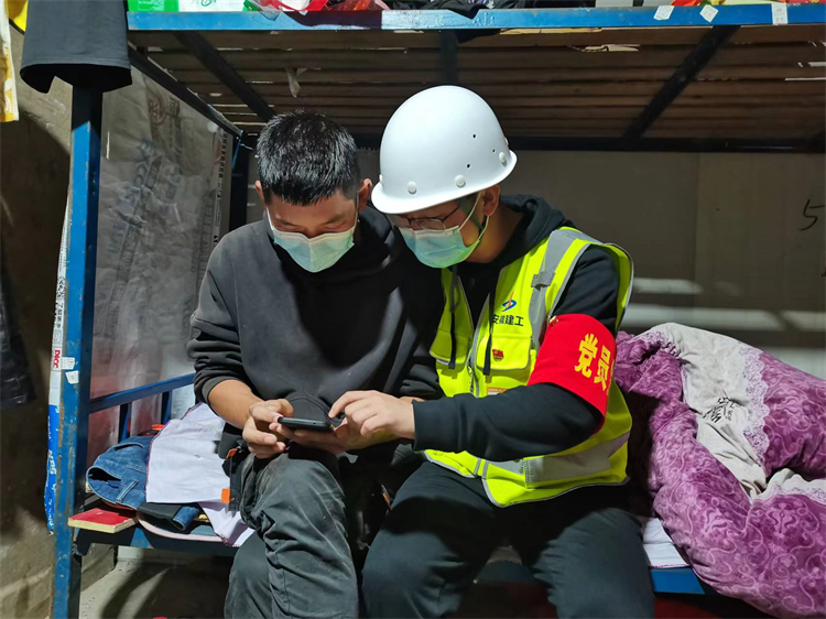 五里片区二期复建点EF地块位于合肥市庐阳区颖上路与凤城路交口,项目班组人员多,管理复杂。作为项目疫情防控的“监督员”,丁本新始终坚定着信念,时刻提醒自己“一名党员就是一面旗帜”,以党建引领疫情防控工作,用科学、严谨、细致的工作态度切切实实做好每一个细节,不放松、不懈怠,尽全力做好防疫工作。他厘清了项目上疫情防控的主要困难:一是工人的文化程度普遍较低,疫情防控意识淡薄,封闭管理给很多班组职工的生活带来了不便,不理解、不配合的情绪成为疫情防控的首要困难;二是工地周围的出入口较多,封闭管理较难实现,易出纰漏;三是工地的人流量大,人员不固定,难以避免不与外界人员接触。作为一名疫情防控监督员,他白天上楼层监督防疫,提醒放松警惕的职工佩戴好口罩,晚上经常走进生活区,走近工友的身边交流谈心、耐心开导,讲解疫情防控的重要性,在他的努力下,项目班组的配合度有了明显的提升。