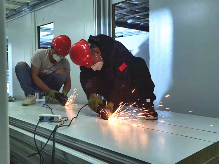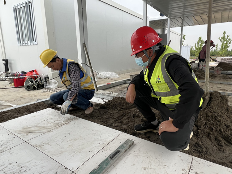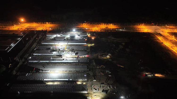 以“区域管理”为主线,采取“分区作战,分段推进”模式严格执行24小时轮班制。20天建设周期,1/3天的阴雨绵绵,被汗水、雨水浸透衣服的工人们从未停下他们熟练且机械性的操作,一遍遍地拧动扳手,一次次地扣动电动螺丝刀,有的焊接、有的切割、有的吊装、有的砌砖、有的穿线,不同工种都用他们行云流水般的“工匠”之力完成项目的建设工作。