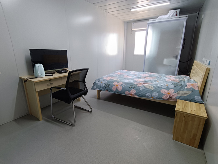项目严格按照“三区两通道”建设,每个隔离单元中间为医护通道,两边为隔离房区,总体呈“鱼骨状”布局,包含隔离间、办公区、物资配餐区、配套附属用房及驿站内管网、道路、围档等内容,主要用于疫情常态化防控及应急处理。