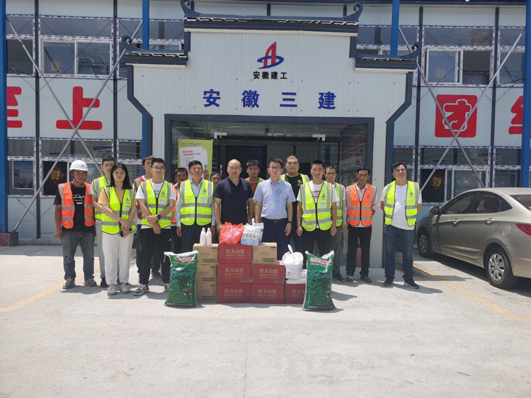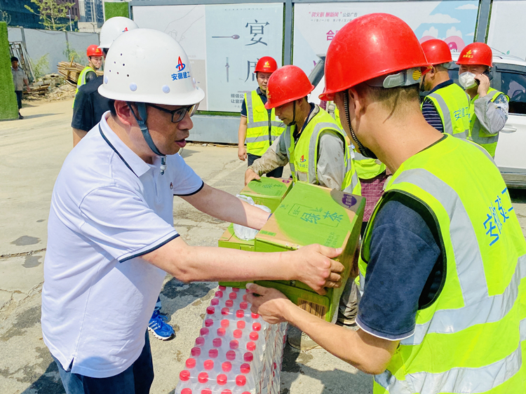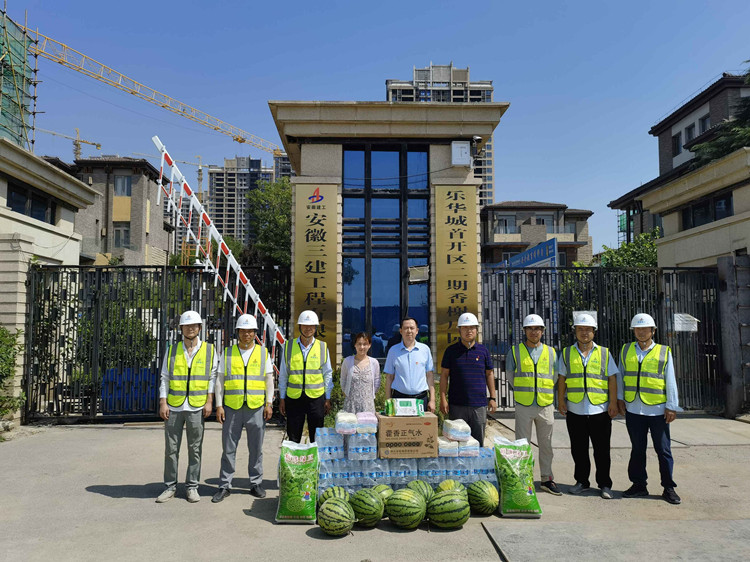 7月12日至15日,安装公司党支部书记刘旭峰和分公司副经理杨新华、徐萍、安全科科长万景行先后前往合肥一中瑶海校区项目、合肥智慧产业园项目、合肥一中改造项目、北城医院项目、合肥市中心图书馆项目、工投蜀山慧谷产业园等项目现场,慰问在炎炎夏日仍坚持作业的项目部一线职工,及时为他们送去了防暑降温用品。