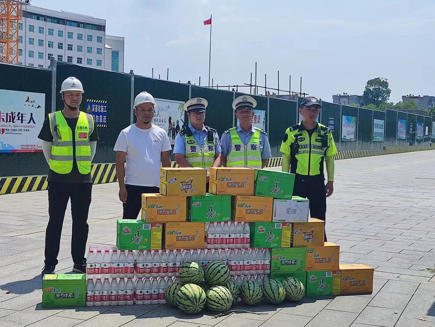 自开工以来,项目的顺利推进离不开庐江县交警中队的大力支持。为了表达对交警同志们的感激之情,7月15日上午,水利交通公司庐江县庐城镇1#、2#、3#片区雨污分流改造及管网修复项目管理人员购买了送清凉物资2车,包括矿泉水、绿茶、西瓜等,让坚守在一线的交警们感受到“警民一家亲”的温馨。