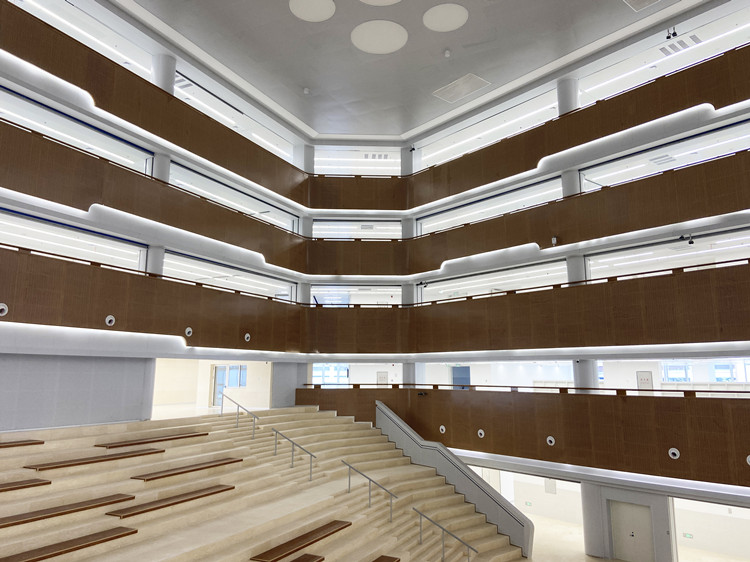 校园以书院院落形式作为传承庐州中学堂的主体,将中国传统的书院空间转化为校园空间,营造出庭院安静、学习氛围和谐的核心教学区域。主要包括3栋教学楼,6栋学生及教职工宿舍楼,图书行政综合楼、艺体中心、生活服务综合楼综合体,科创中心,国际交流中心,学术交流会议中心,地下车库等、400米标准运动场以及配套附属设施。