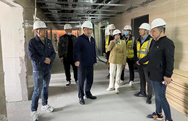 何洪春一行深入项目外科楼改造施工现场,详细询问了项目成本、进度、质量、安全文明、疫情防控等情况,现场听取了项目部有关情况汇报。在项目现场,何洪春对项目下一步工作提出了要求,他指出:一是要根据改造项目特点做好项目安全文明施工,要分时分阶段做好噪声控制,减少施工作业对周边居民生活的影响;二是要抢抓进度,合理组织各工序穿插施工,做好成品保护;三是要严格把控大面积陶瓷薄板铺贴质量,争创精品工程;四是要以建设“七好项目”为目标,扎实做好各项项目管理工作。