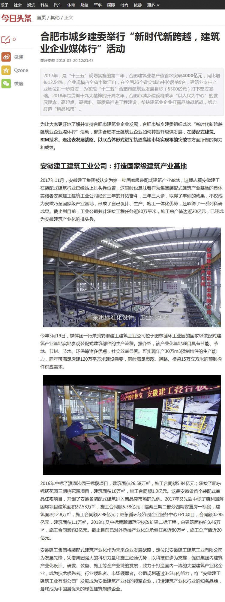 今日头条、巴士头条、安徽建筑业——合肥市城乡建委举行“新时代新跨越,建筑业企业媒体行”活动 发布时间:2018-06-13 来源:今日头条、巴士头条、安徽建筑业 撰稿人:今日头条、巴士头条、安徽建筑业 浏览次数:12448