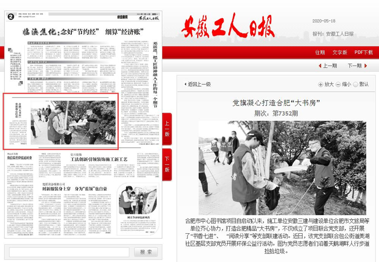 安徽工人日报——党旗凝心打造合肥“大书房” 发布时间:2020-05-18 来源:安徽工人日报 撰稿人:李艳丽 浏览次数:20184 报道链接:http://epaper.xunbaoah.com/index/article/articleinfo?doc_id=3334