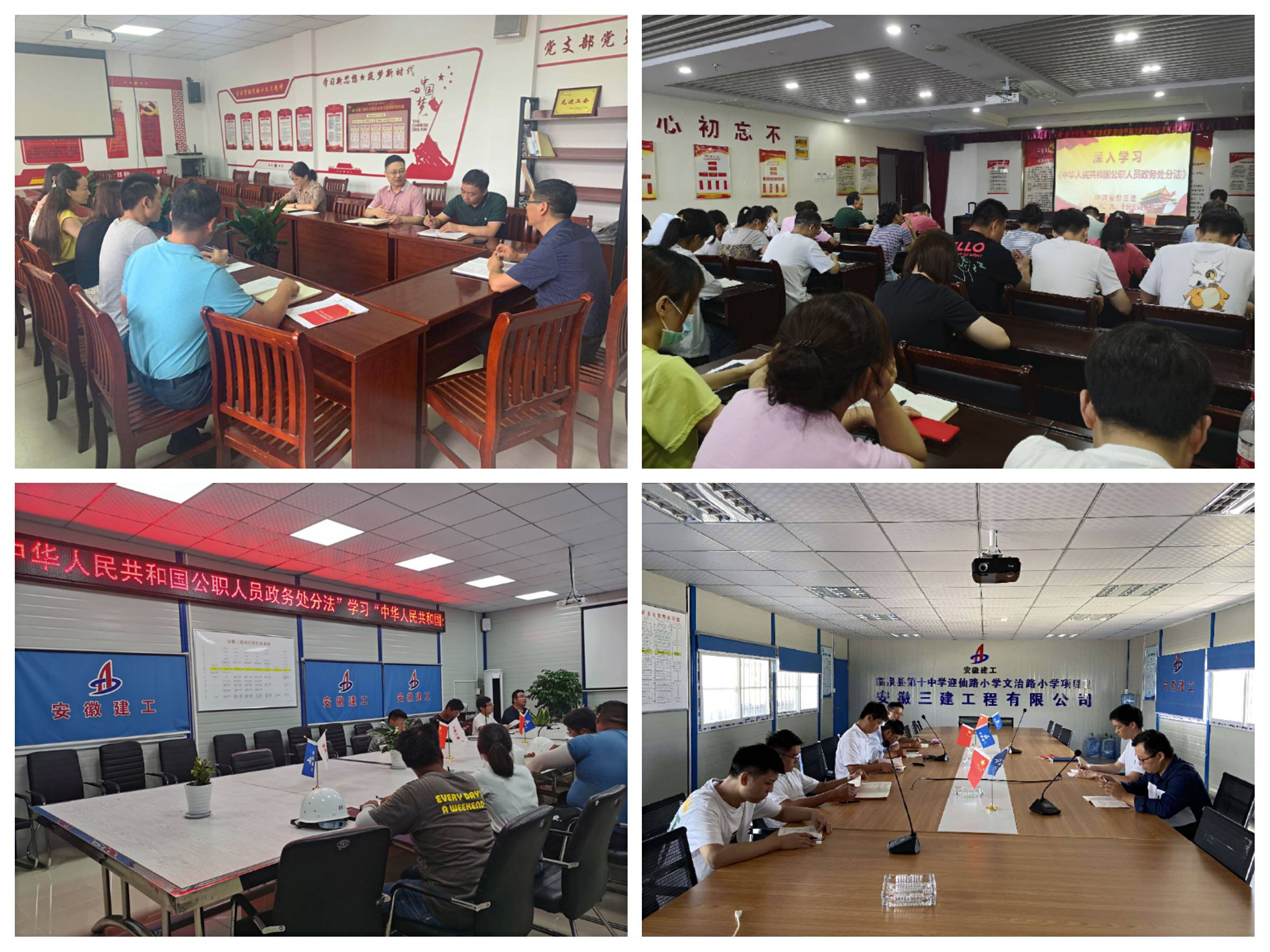 截止目前,共计12个土建公司、16个专业公司、8个外地公司组织职工对《公职人员政务处分法》进行了学习。
