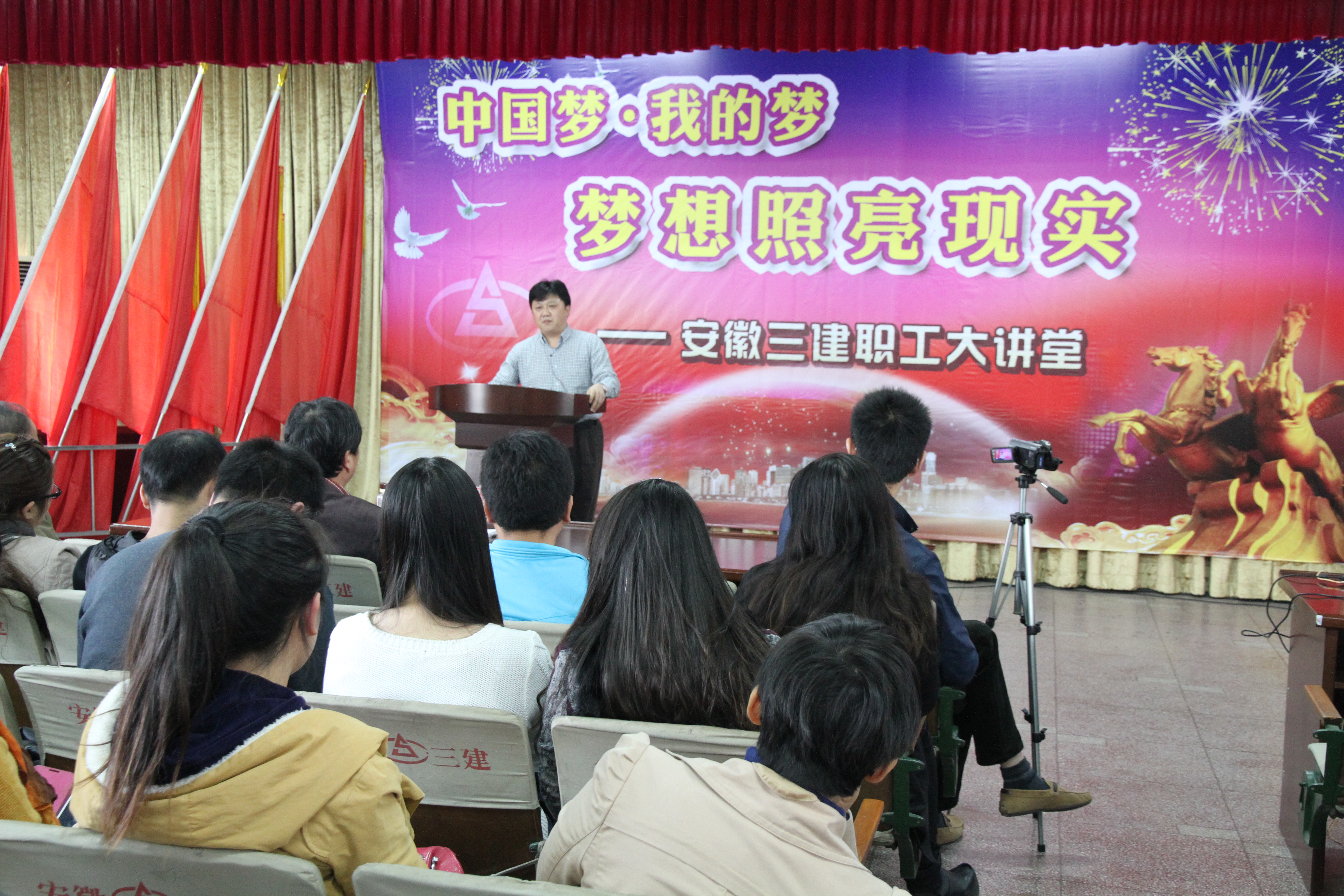 11月4日下午,一场主题以中国梦•我的梦——梦想照亮现实的安徽三建首期职工大讲堂在公司五楼会议室举行,公司所属在肥单位的党支部书记、工会主席、团支部书记以及青年职工190余人参加,公司工会主席、副总经理骆新农出席本次活动并做了活动主旨介绍。