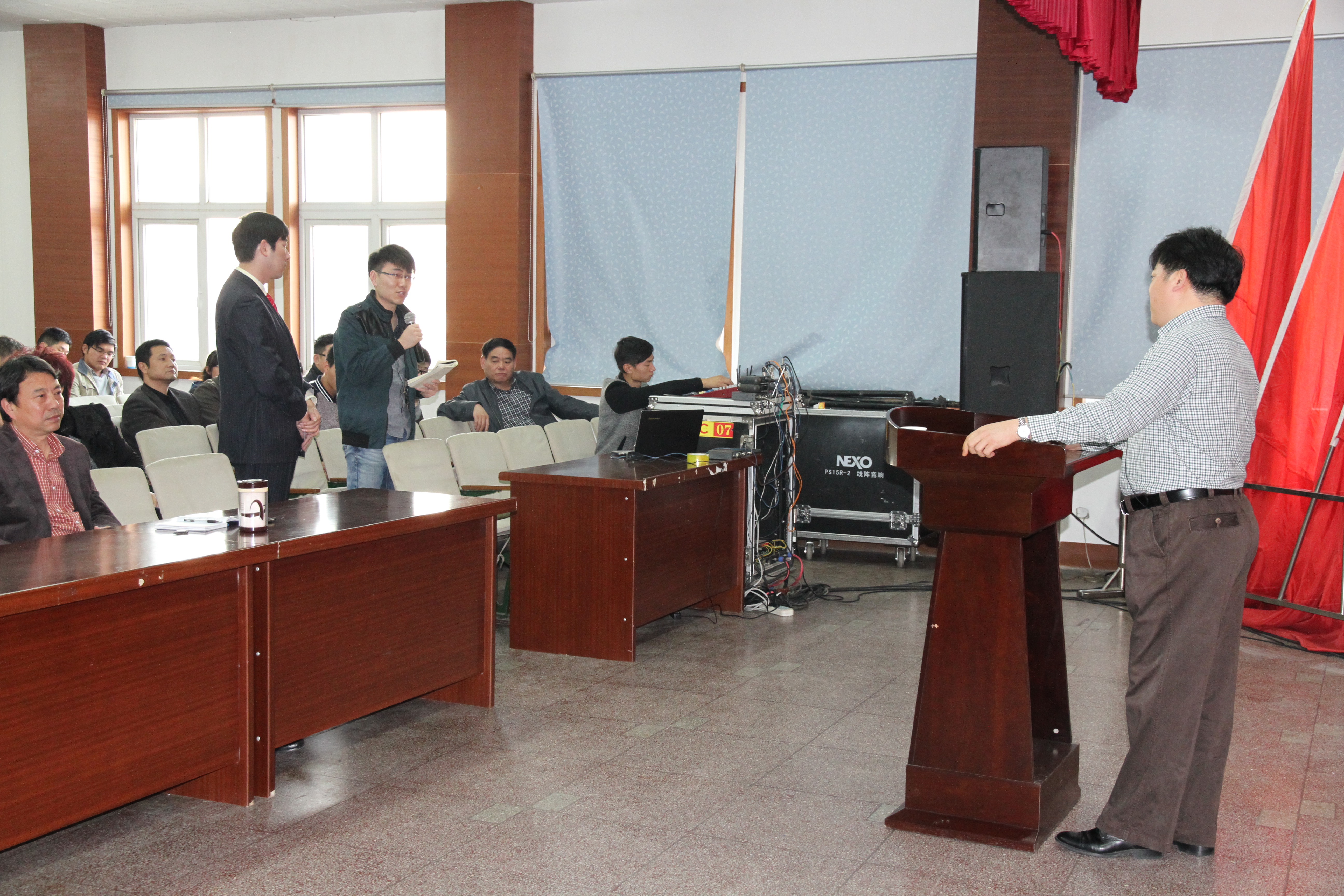 图为:公司总经理助理、七公司经理何洪春在演讲