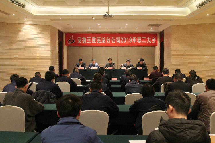 2019年3月13日下午,芜湖分公司召开2019年职工大会。本次职工大会由分公司党支部书记、副经理汪辅洲主持。分公司经理、党支部副书记彭章斌作《经理工作报告》,分公司全体职工参加会议。