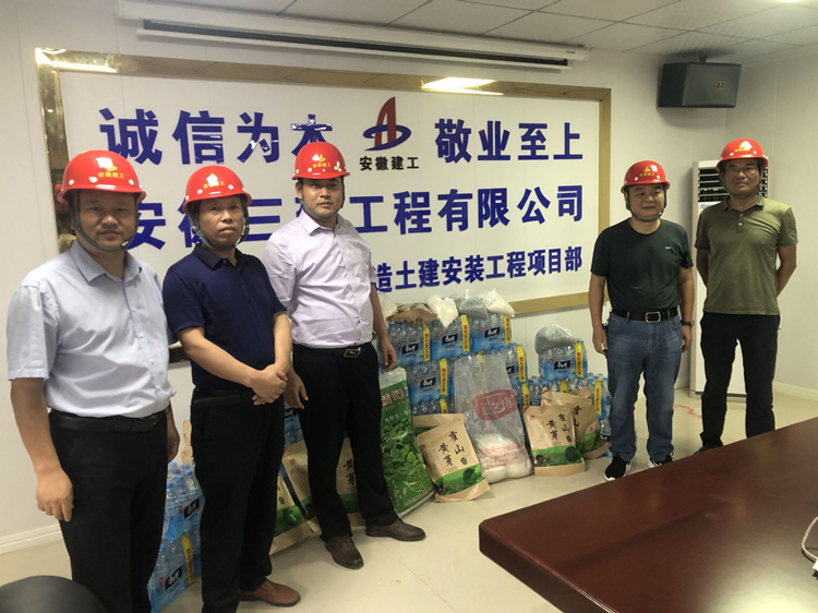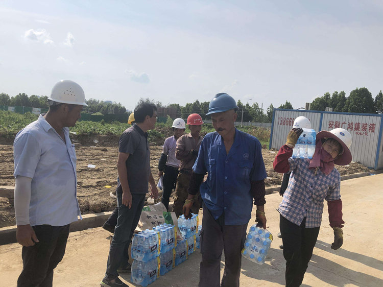 自入伏以来,安徽各地骄阳似火、气温不断攀升。华力劳务公司立即开展夏日“送清凉”慰问活动,为省内项目驻点人员和工人们送去矿泉水、茶叶、绿豆和白糖等防暑降温物品,在炎炎夏日里为奋战在一线的职工送去关心和慰问。