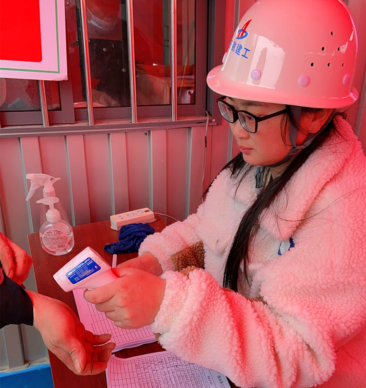 七公司御景黄城项目疫情防控监督员殷玲玲在工地入口认真做好体温检查登记工作