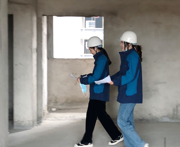 八公司临泉银杏苑项目资料员程妙铮、陆晴复核现场标高、开间、净高