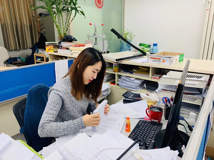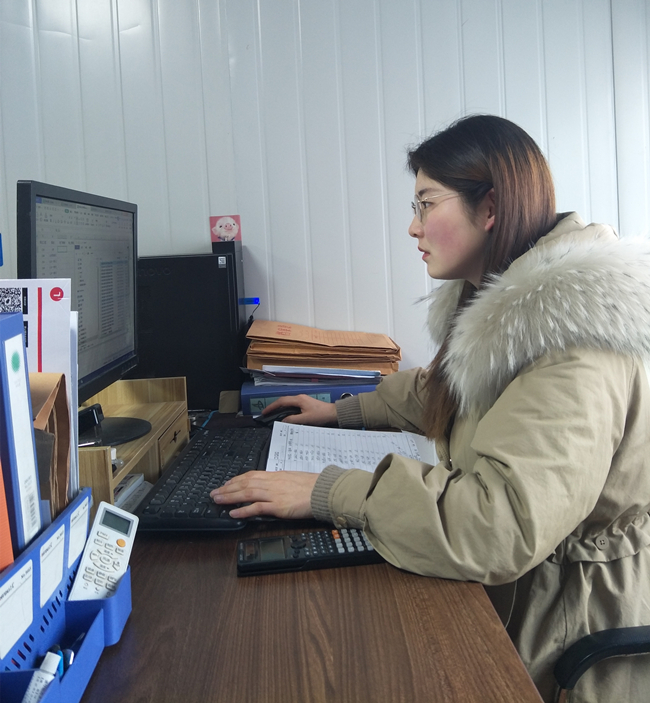 十公司财务科员张侠凤(怀孕7个多月)坚守岗位处理审计往来函证回函统计工作