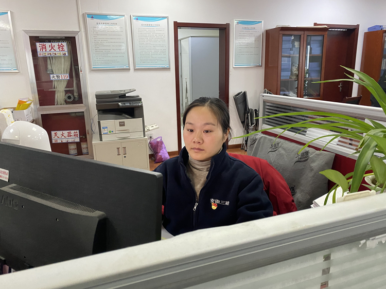 蚌埠公司淮南鼎元世家项目部核算员黄梦玲正在分解工程量、报招标计划、整理竣工项目成本资料