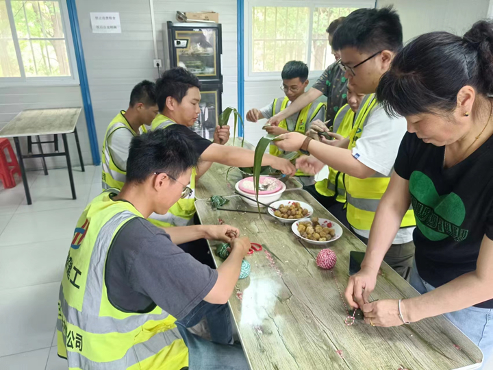 安徽三建融星府项目正值基础施工及主体结构施工的抢工阶段,为尽快完成施工任务,项目部广大职工及现场作业人员在端午节期间坚守岗位、并肩奋战在生产最前线。为弘扬和传承中华传统文化,感受端午节独特的习俗,芜湖分公司团支部及工会策划并组织了此次活动。