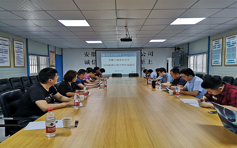 2020年7月19日上午9时,北京公司在天津碧锦园项目部举办了“2020级新入职大学生见面会”。北京公司副书记王忠,部分项目经理和老员工参加了本次见面会。