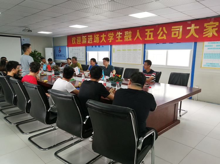 五公司在皖投·国滨世家二期项目为新分配的10名大学生举办迎新座谈交流会。五公司领导班子成员及部分老员工参加座谈会。会上,五公司副经理瞿伟就职业规划、参加工作需要注意事项提出9点要求;支部副书记尹力与新员工交流兴趣爱好;经理左从义对新员工提出殷切希望。 会后10名新员工将在皖投·国滨世家二期项目部接受为期2个月的技能培训。