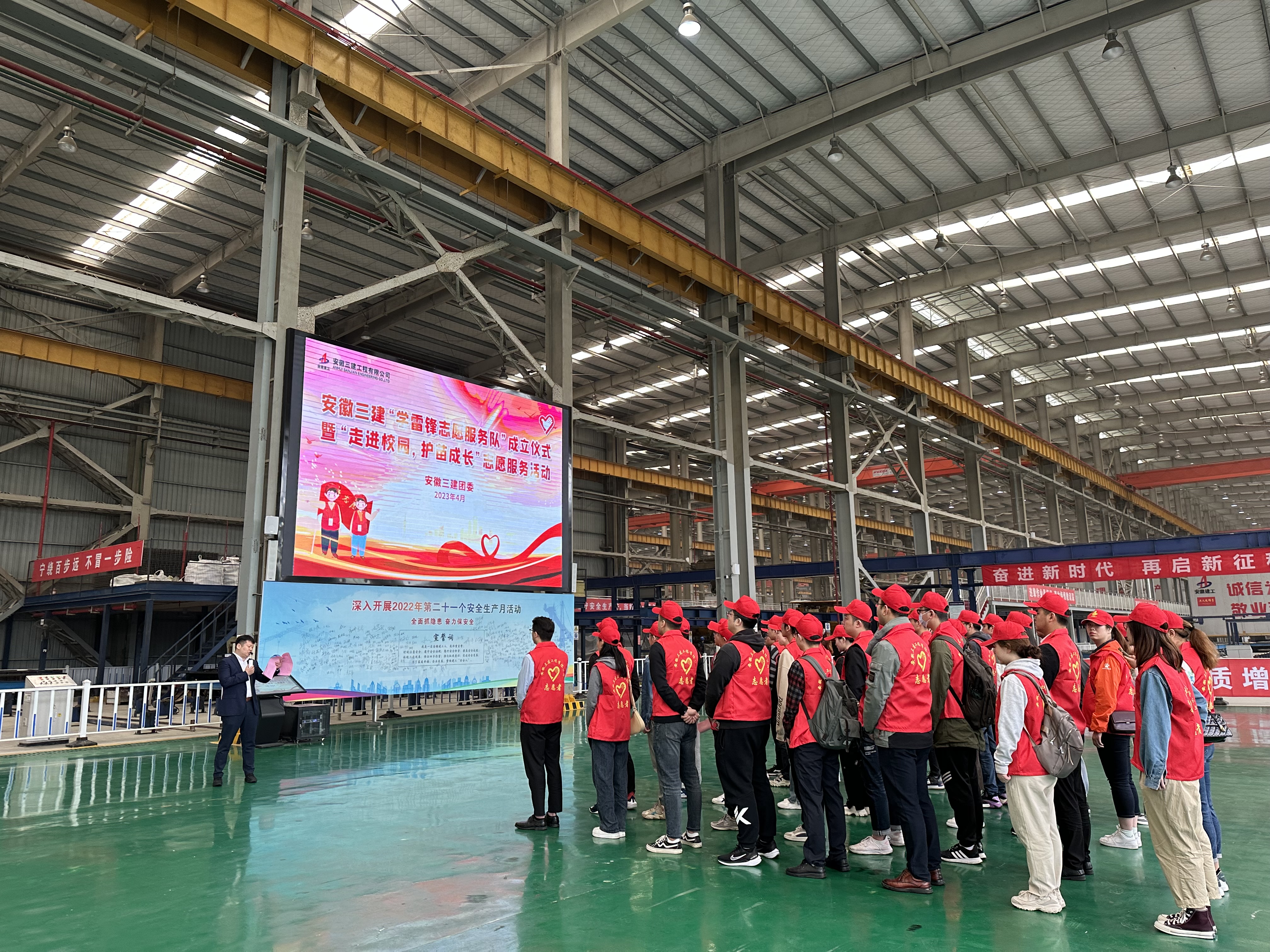 4月14日,公司团委在安徽建工建筑工业公司开展“学雷锋志愿服务队”成立仪式暨“走进校园,护苗成长”志愿服务活动,公司青年团干及志愿者代表共计50余人参加活动。