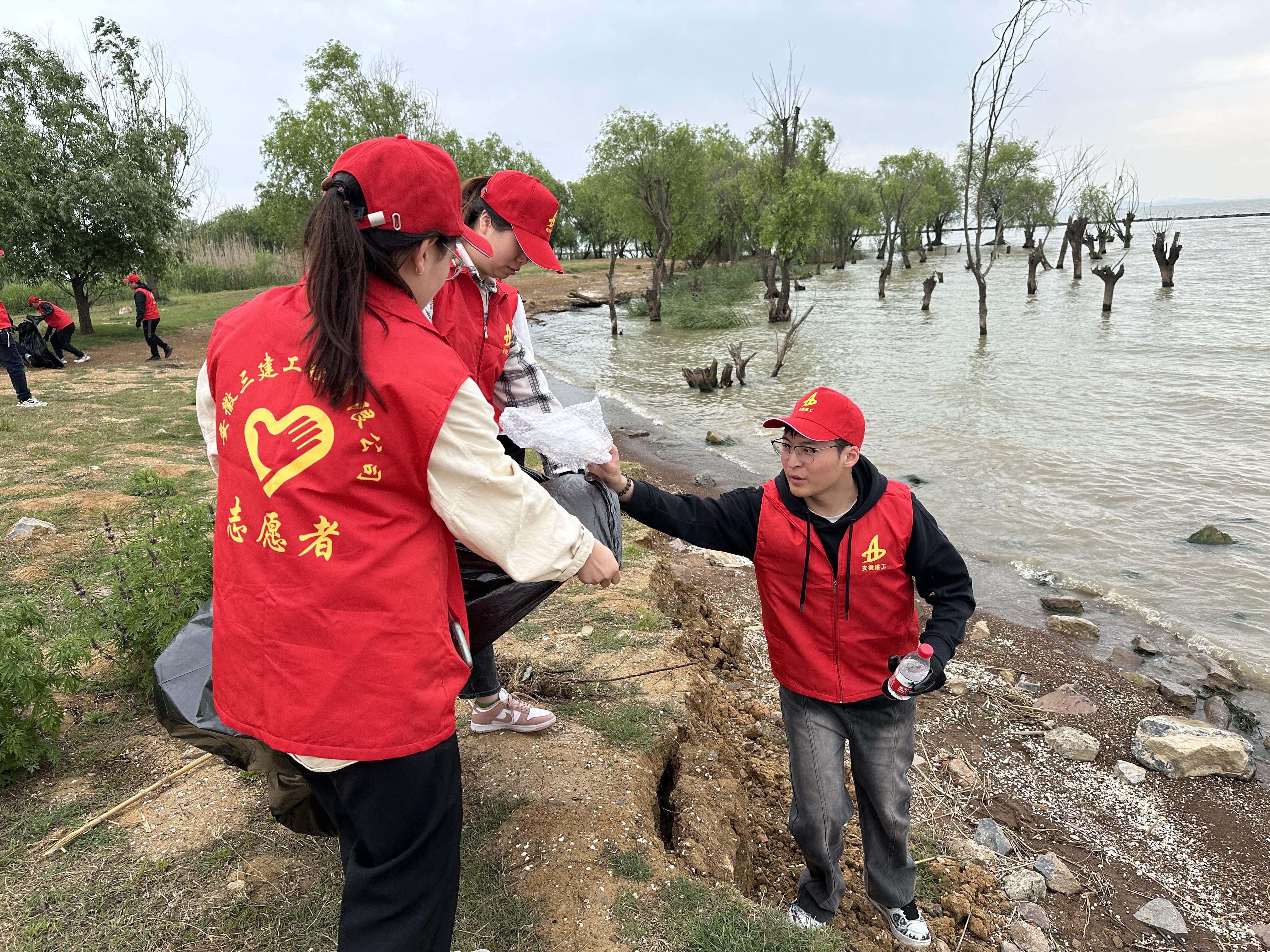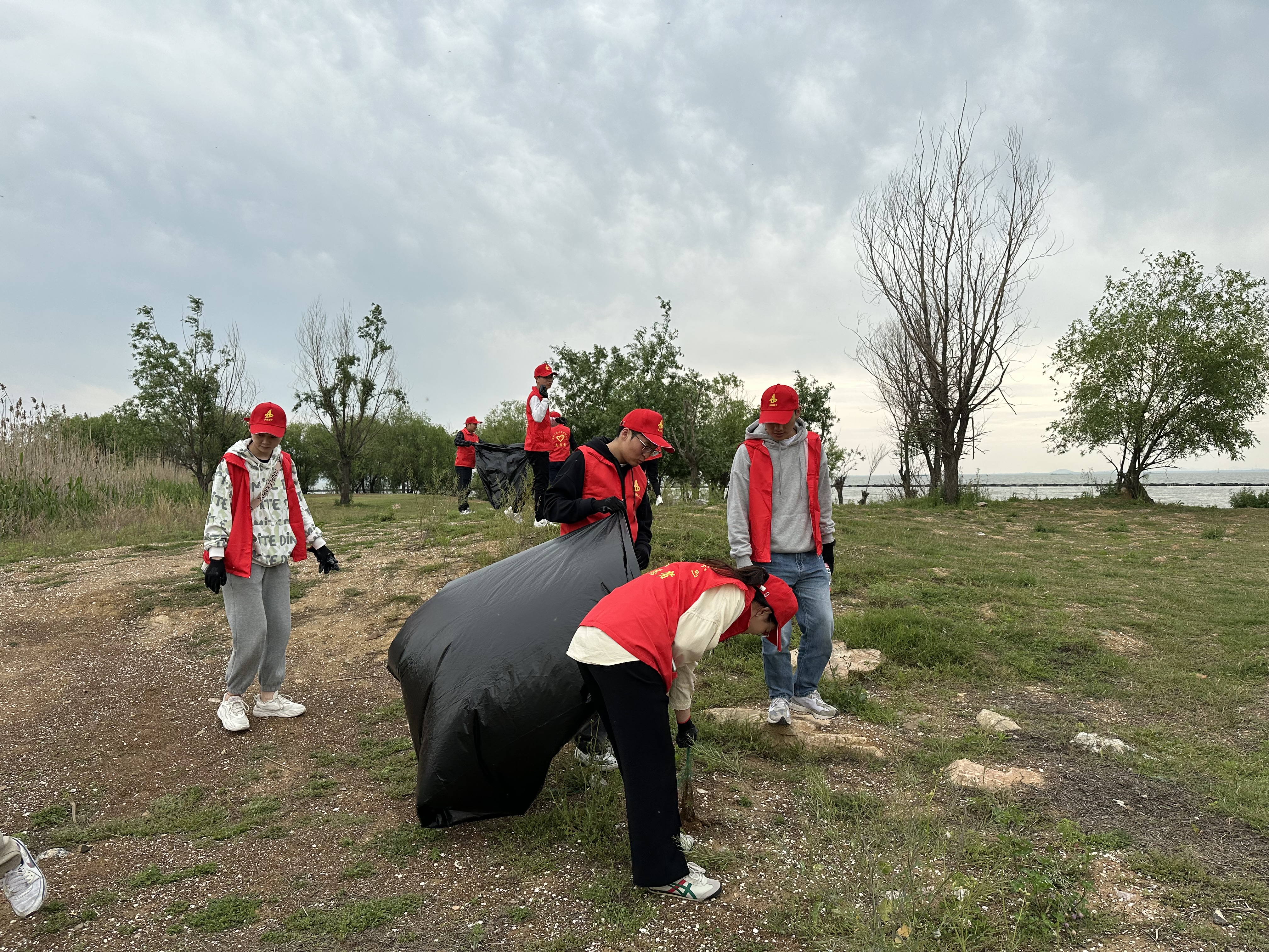随后,青年志愿者一行来到巢湖岸边,开展“守护绿色巢湖”环保志愿服务活动,志愿服务队沿岸捡拾烟头、白色垃圾等,用实际行动保护巢湖水环境。