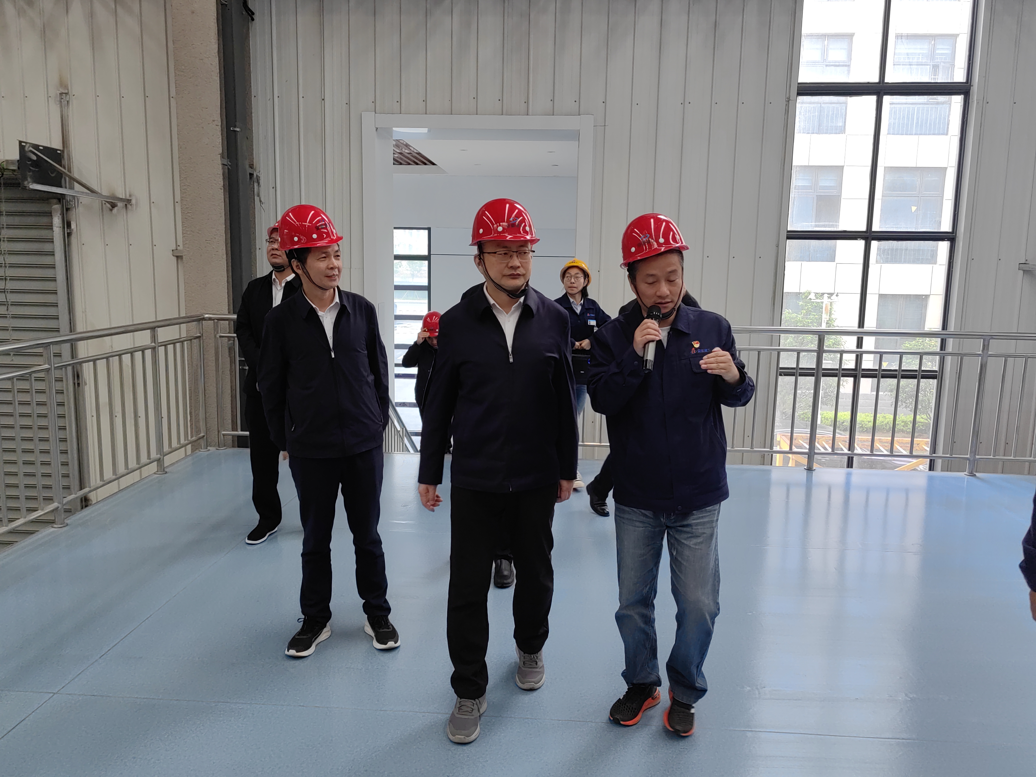 黄维群一行实地了解车间产能现状,详细询问了关于智能化数字管理系统、智能化管片生产线等数字化设备运行情况,对北城工业公司基地的生产运营给予高度评价。
