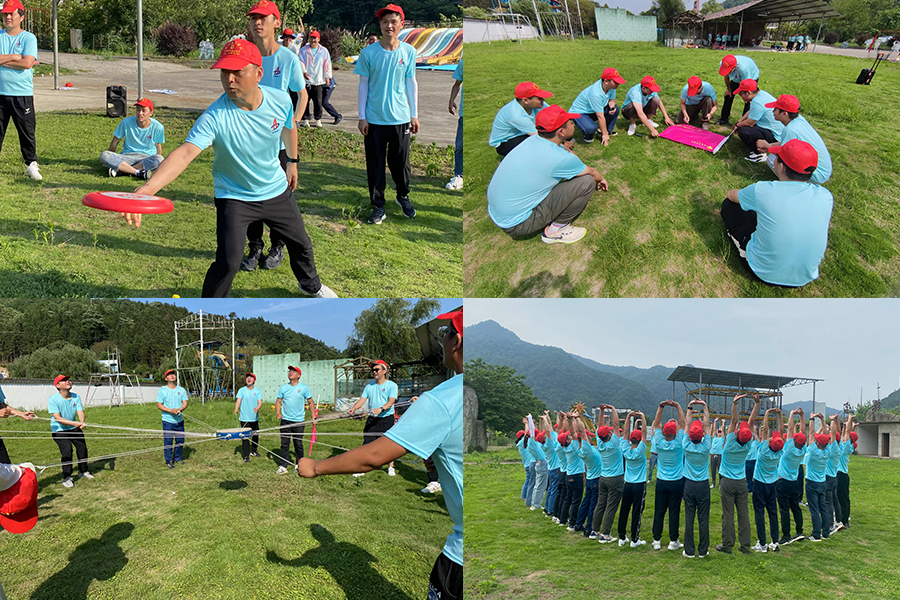 经过破冰及篝火晚会的气氛活跃,全体人员在拓展教练的带领下分成四个团队,小组成员们脑洞大开,别出心裁地想出各自的队名、团队口号,并制作了各具特色的队旗,紧张、刺激的拓展之旅正式拉开序幕。《鼓动人心》、《神笔马良》、《飞盘嘉年华》、《篝火晚会》等游戏项目是对队员心理素质和团队默契度的综合考验。大家在实践锻炼中学习,在竞技比拼中成长,活动气氛十分热烈。