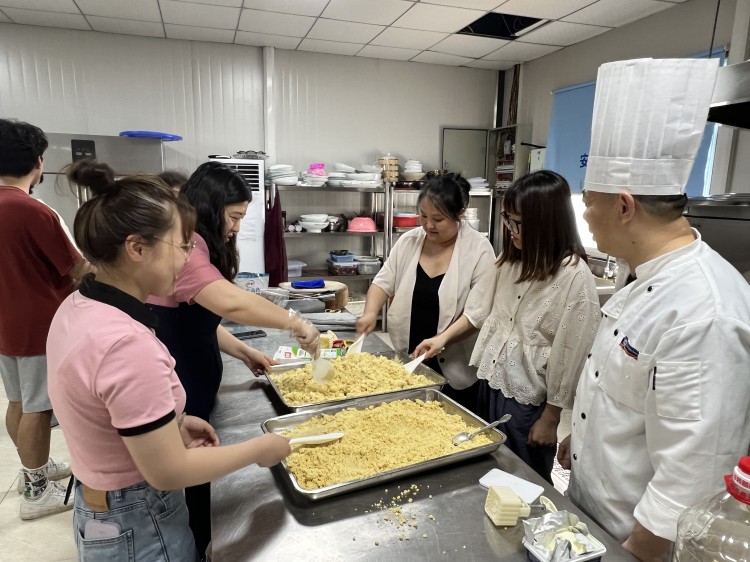 活动现场,工作人员为参与活动的职工分发了制作绿豆糕的食材,模具。在大厨的详细讲解下,纷纷上手开始制作,揉绿豆团,压模,分装,经过大家的一番努力,一枚枚香甜可口的绿豆糕摆上了桌面,大家成就感油然而生,活动也在欢声笑中落下帷幕,制作完成的绿豆糕将在端午节当天分发到每一位职工手上。