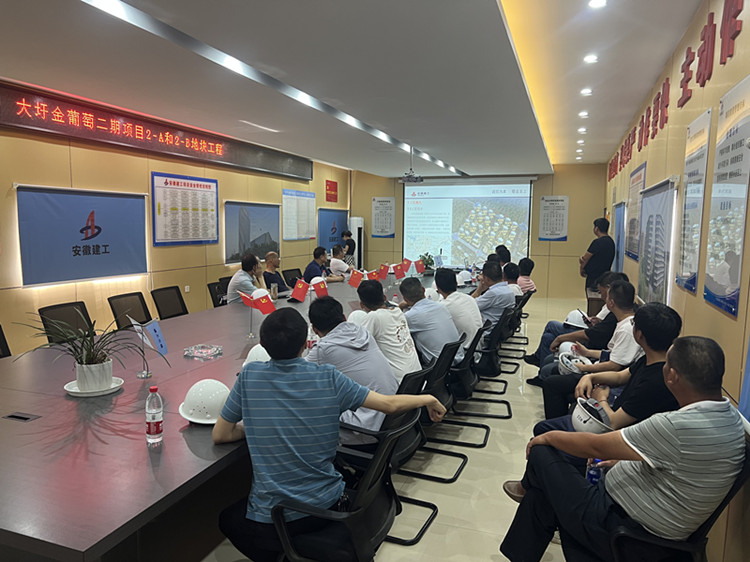 6月28日下午,十分公司党支部书记吴明宽带队赴八分公司大圩金葡萄家园二期项目2-A和2-B地块工程开展项目新技术管理经验对标交流学习。