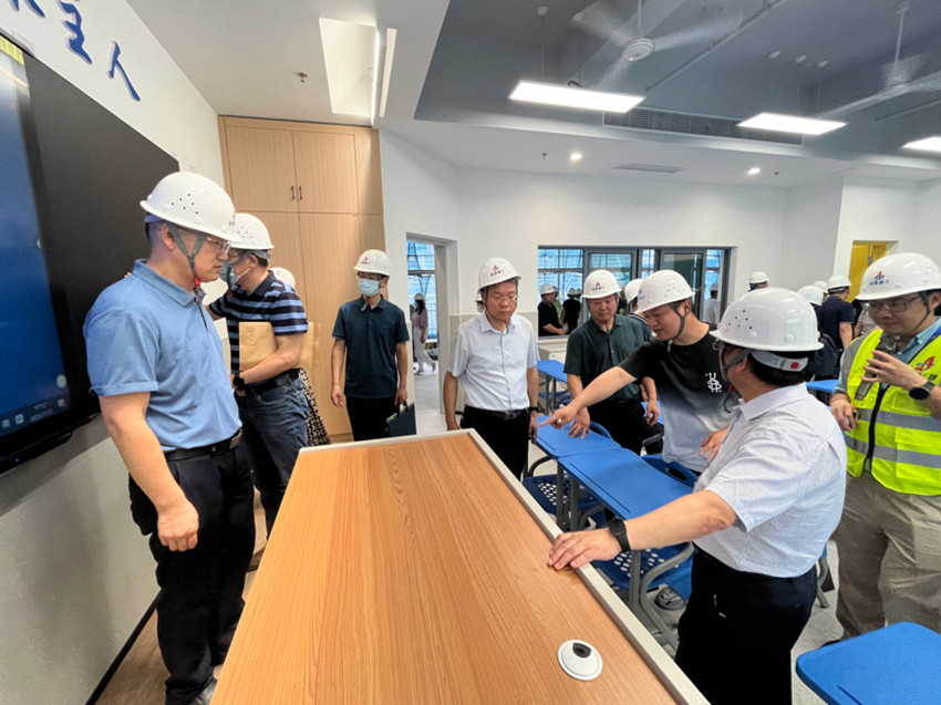 随后,封安保一行参观了项目2#楼教学楼样板间,听取了装饰负责人对样板间施工工艺方面的详细汇报,对建工三建的质量管理及施工效率给予了充分肯定。
