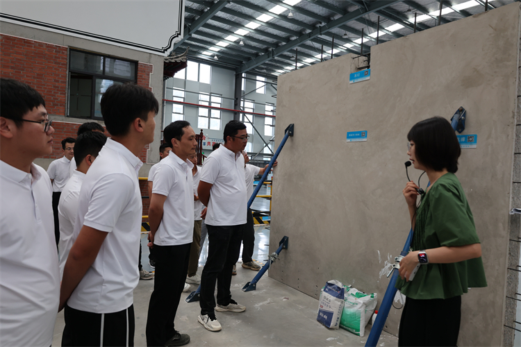 当天下午,在分公司副经理潘金伟的带领下,大家来到高速时代学府项目观摩,参观了质量样板展示区、室内工艺样板展示区、VR体验馆、安全宣讲台等,重点了解部分项目建设亮点,如铝膜楼栋窗台企口、粉刷压槽提前优化、智慧工地应用管理等。随后,潘金伟结合项目现场的施工工艺给大家作了简要介绍。