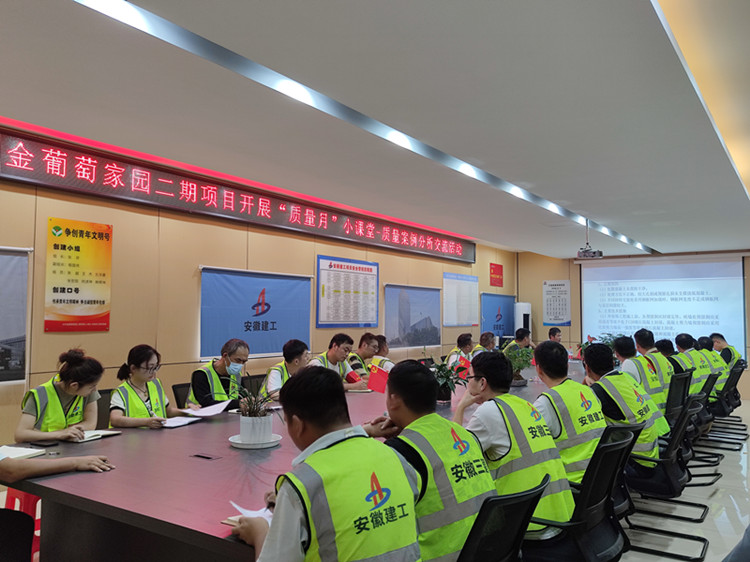 为深入贯彻落实2023年全国质量月“增强质量意识,推进高质量发展”主题要求,以及集团、公司关于“质量月”的相关工作安排,进一步提高项目质量和整体管理水平,9月26日下午,大圩金葡萄家园二期项目组织开展了一次“质量月”小课堂——案例分析交流活动。