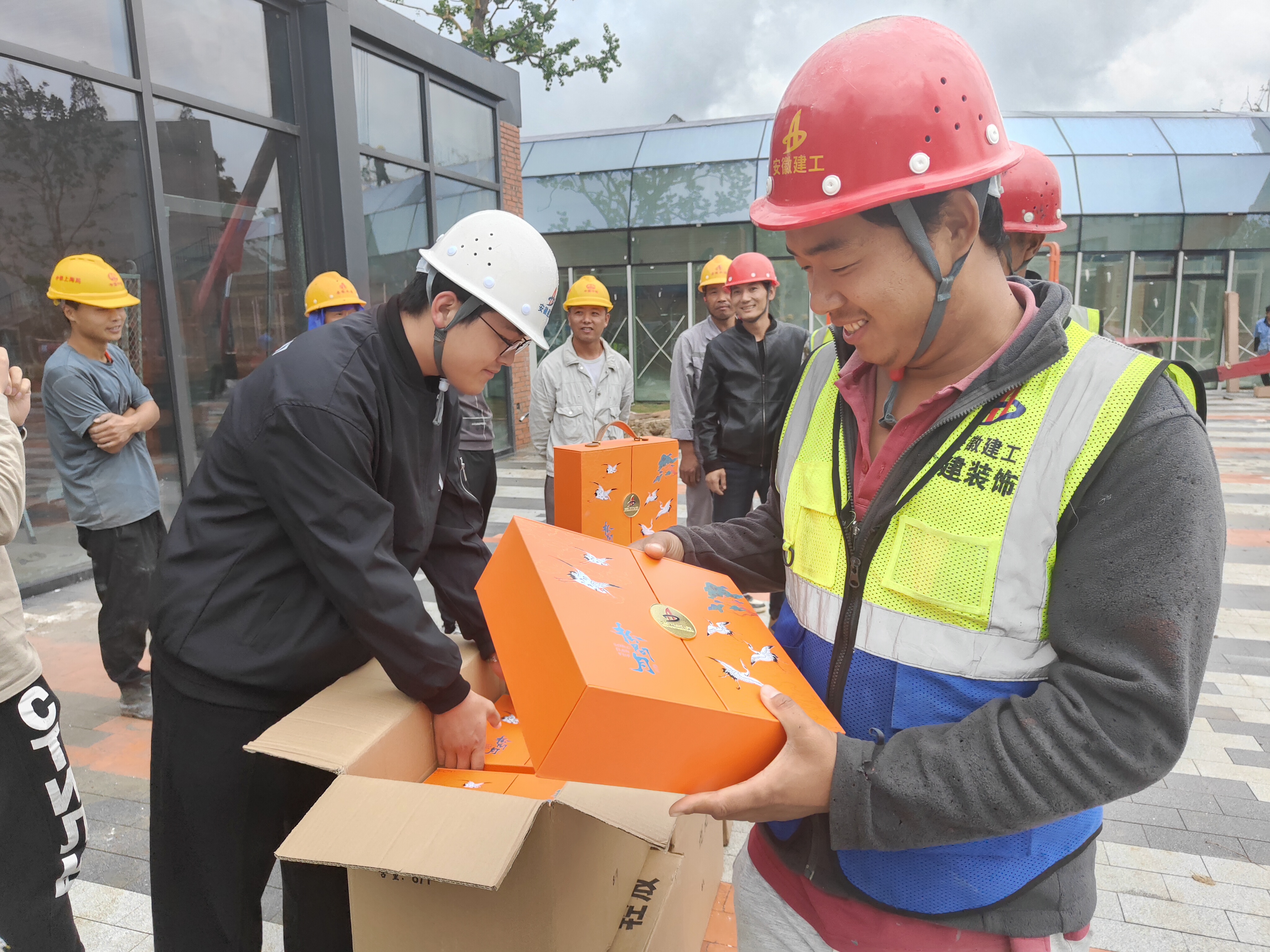 金风送爽,中秋月圆。正值丹桂飘香的中秋佳节总是能牵动职工们思乡的心弦。9月29日上午,装饰公司各项目为建筑工人们送上中秋月饼和中秋祝福。