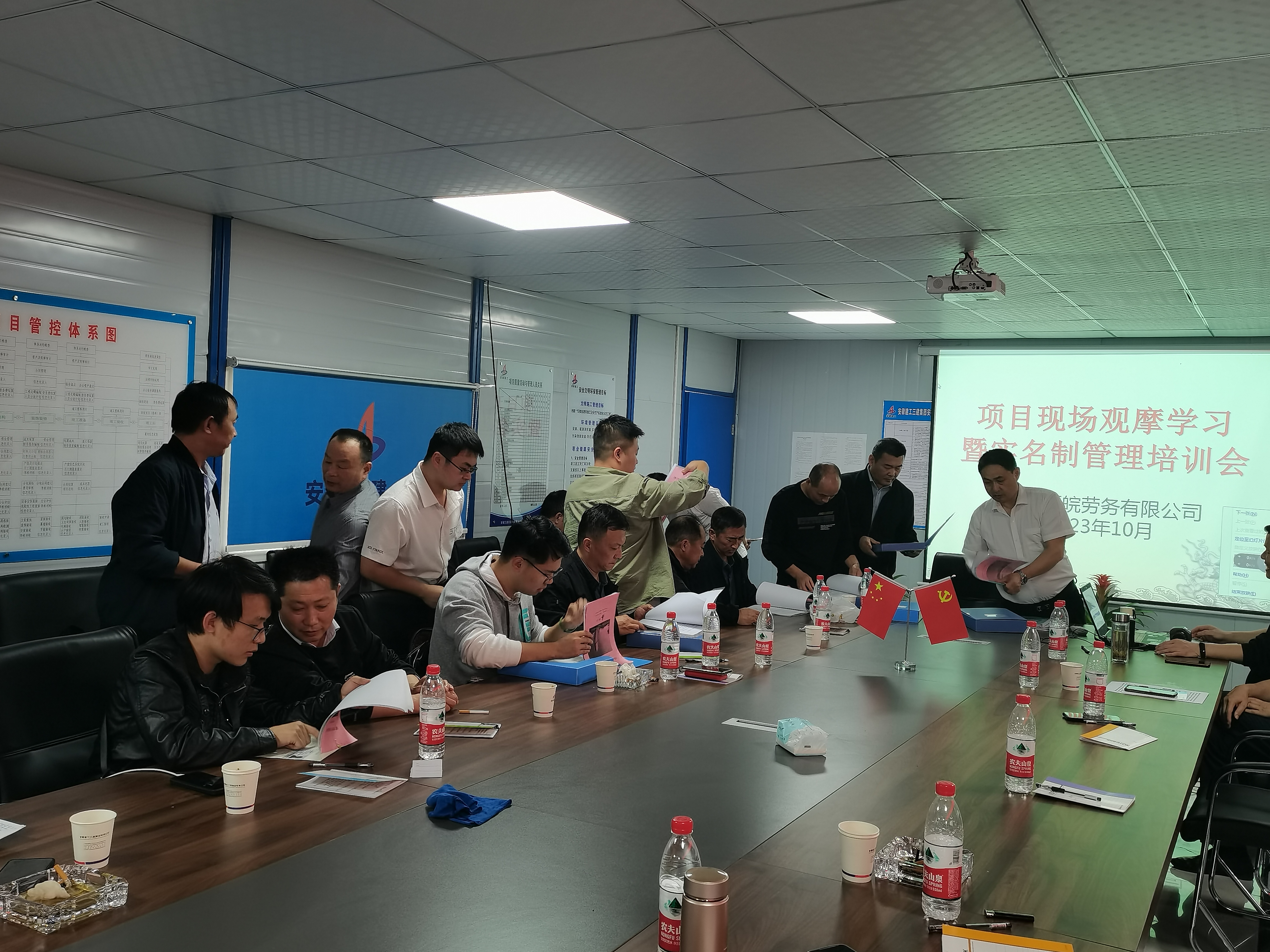 本次培训利用中午时间进行实名制资料及安全资料观摩交流,学习国检项目安大绿色产业创新基地实名制资料的规范性完整性,驻点人员相互借鉴优秀劳务管理经验,做到查缺补漏,取长补短。会后进行了劳务管理业务测试。