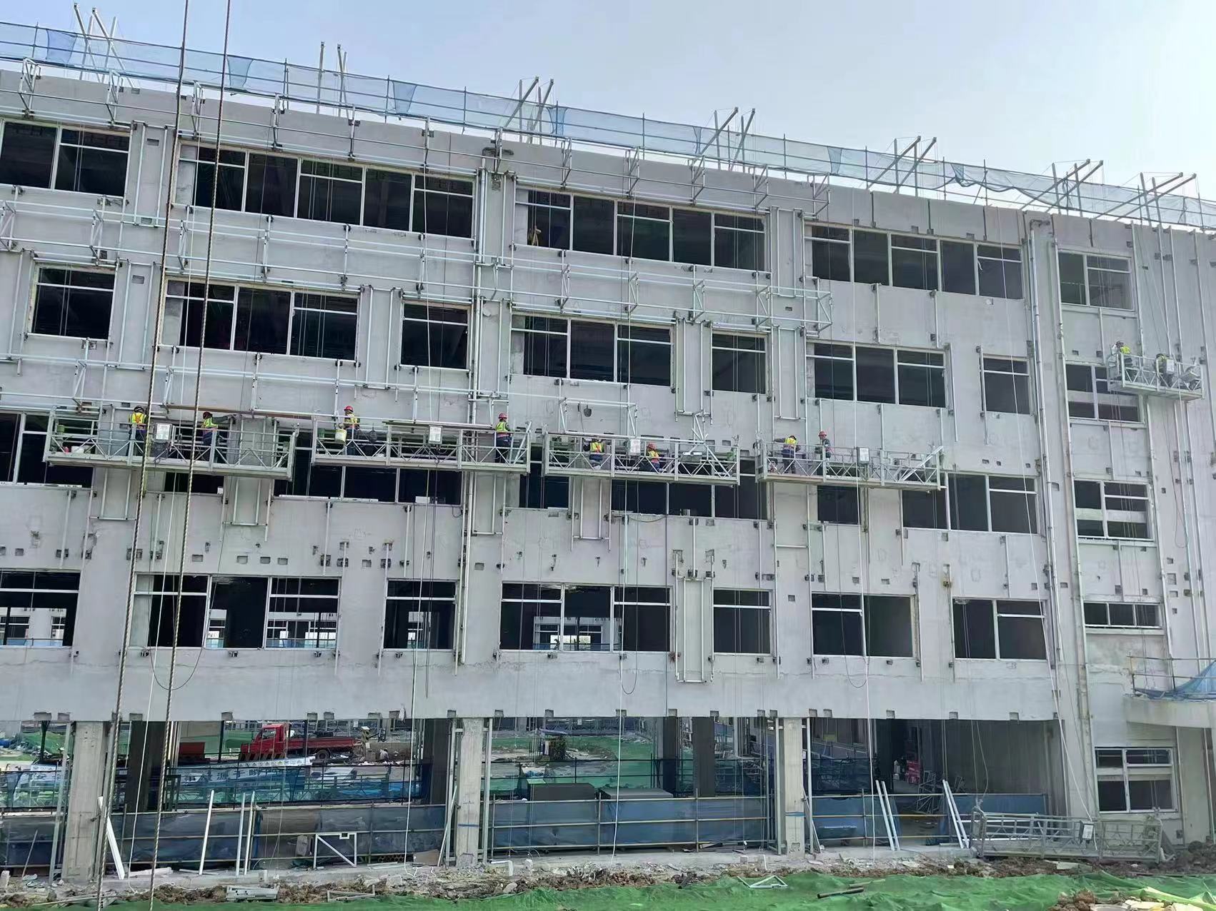 目前,淝河一中项目每天装饰施工人员近550余人,外装饰已搭设吊篮近500台,10月,项目完成产值约4174万元。
