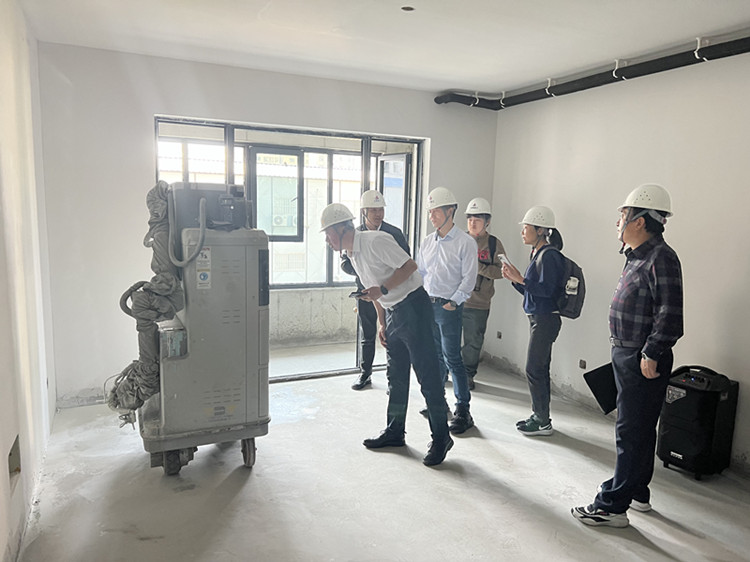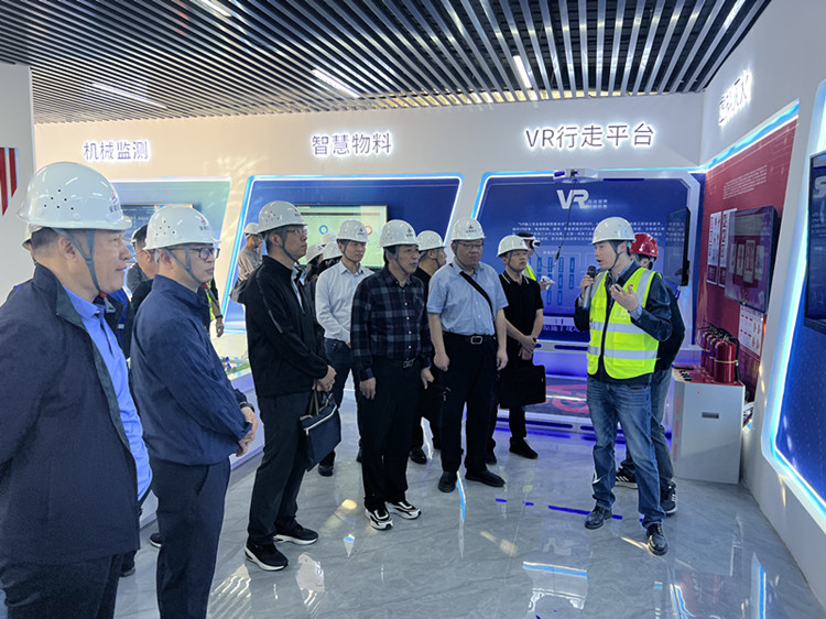 调研组一行实地查看了项目建设和智慧工地应用情况,听取了项目负责人关于工程概况、装配式建筑、智慧展厅等相关情况的汇报,重点查看了项目安全VR体验馆和BIM+智慧工地数字中心。随后,大家还参观了自动喷涂机器人现场施工技术。