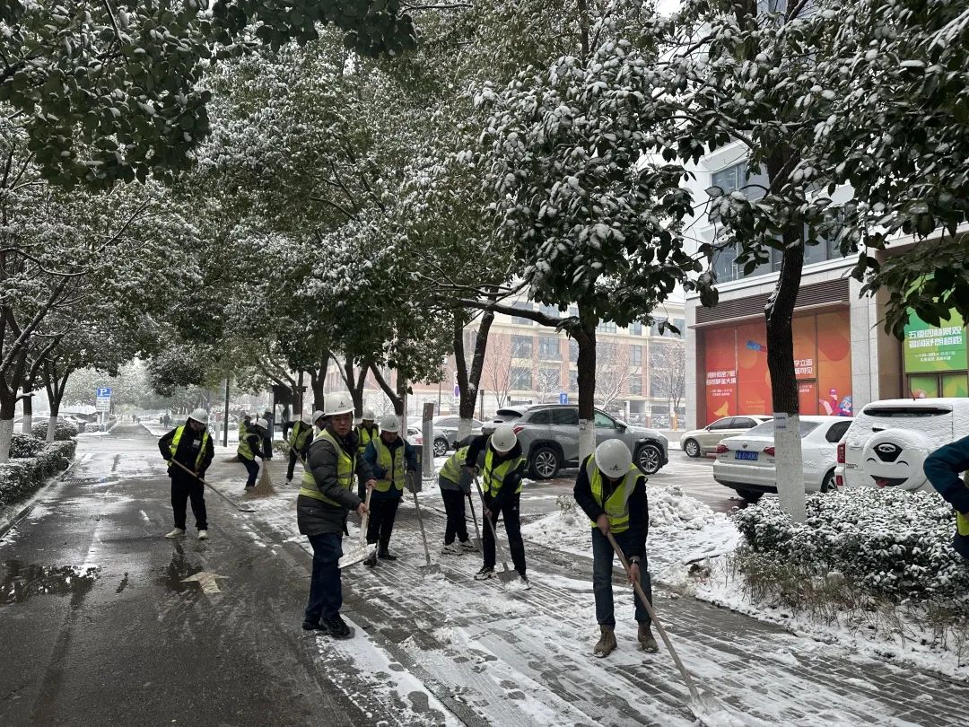 合肥瑶海YH202307地块项目全体管理人员开展义务清雪,助力城市除冰扫雪清障活动,对以项目为中点向两边辐射1公里范围内的裕溪路路面积雪进行清扫。