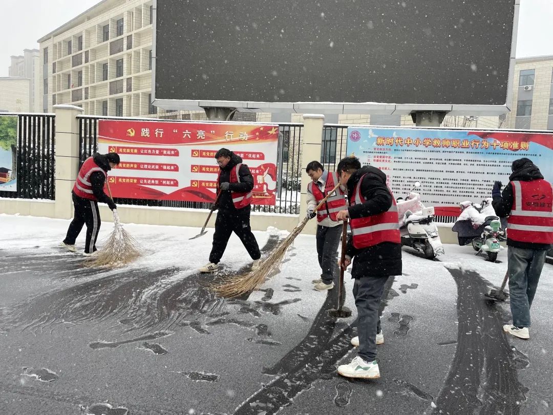 滨湖科学城BK202108地块项目组织管理人员成立党员突击队、青年突击队,前往合肥师范附属小学周边林芝路段及佛晓路段开展“扫雪除冰保安全”活动,确保了师生安全出入校园。