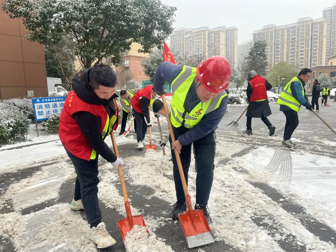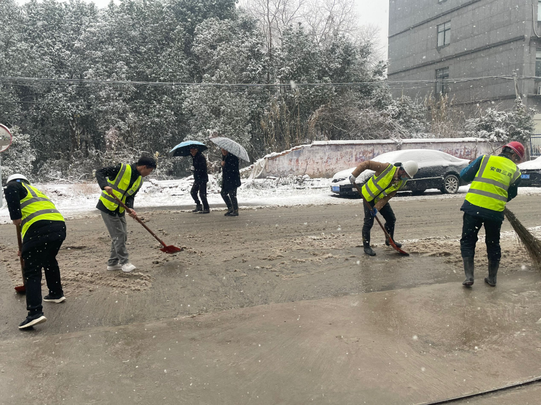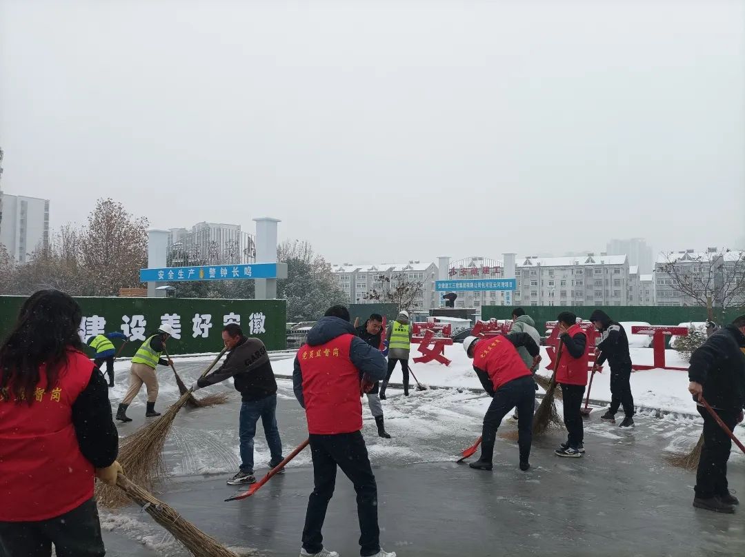 庐江同大镇集镇安置点项目职工组成党员先锋队和青年突击队,对项目周边区域及道路积雪进行清扫,及时消除安全隐患,为职工出行安全做出了积极贡献。