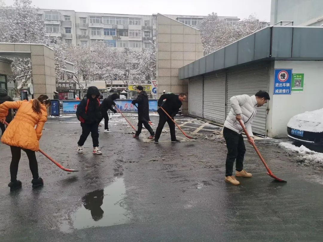 合肥理工学院项目组织全体管理人员对项目西区活动中心进行铲雪清扫,做好防滑防冻工作,为安全生产保驾护航。